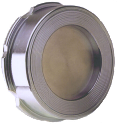 • Tot slot hebben we nog een kleinere (15-200 mm) variant terugslagklep die eveneens is voorzien van een veer die de klep afsluit als de tegendruk wegvalt. Deze ronde klep beweegt echter niet als een deur met scharnieren maar veert op en neer, dus meer als een stop in een wasbak.